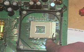Der Sockel (CPU-Steckplatz) hat auch eine Markierung. Meistens ist es nur ein fehlender Pin (Metallkontakt) oder ein fehlendes Loch.