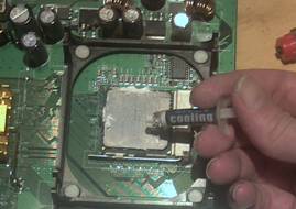 Wärmeleitpaste auftragen. Ist sehr wichtig!!!!!!!!!! Silberanteil in der Wärmeleitpaste ist wichtig. Sie sollte 10% oder mehr Silber beinhalten.