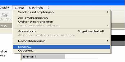 1.Schritt: Gehen Sie auf Extras und Konten.