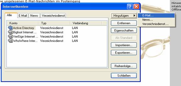 Zu guter Letzt richten wir noch Ihr Email Konto in Outlook Express ein. Sie fragen sich warum? Ich habe doch schon ein Emailkonto? Klar haben sie schon ein Emailkonto, aber da Outlook Express nicht Gedanken lesen kann, müssen wir es ihm sagen. Dafür habe ich auch ein paar schöne Bilder.