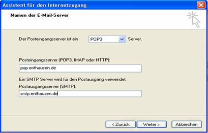 5. Schritt: Hier kommen die Server rein auf denen die Emails zwischengelagert werden. Die Server bekommt man von dem Email Anbieter z.B. E-Mail bei web.de und Internet bei GMX.
