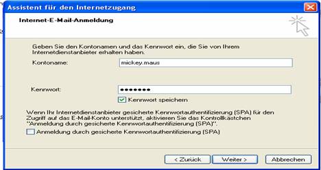 6. Schritt: Auch diese Daten bekommen Sie von Ihrem Email Anbieter.