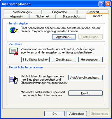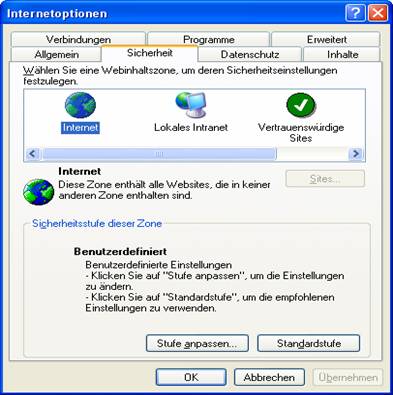 Grundkenntnisse Internet Internetoptionen