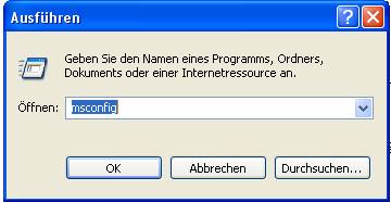 Gehen Sie auf Start à Ausführen und geben msconfig ein….